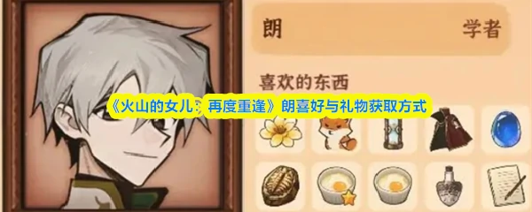 游戏火山的女儿再度重逢,角色朗偏好金色兰花、小狐狸,提升好感度需准备特定礼物。