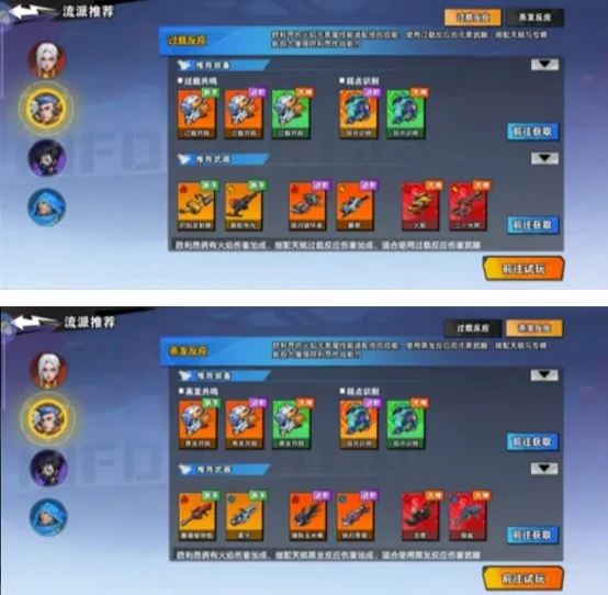 推荐组合:蒸发头盔+护手+心核+鞋子,衣服+背包换弱点套。这套搭配强化蒸发反应伤害,提升触发效率。