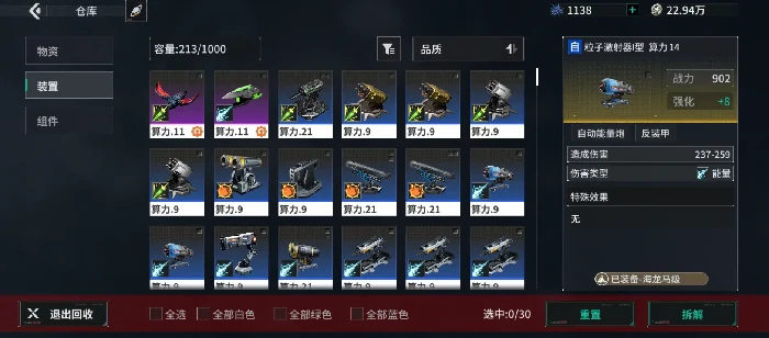 新舰缺资源?用重置/拆解!武器装配页找按钮,一键启动资源返还流程!
