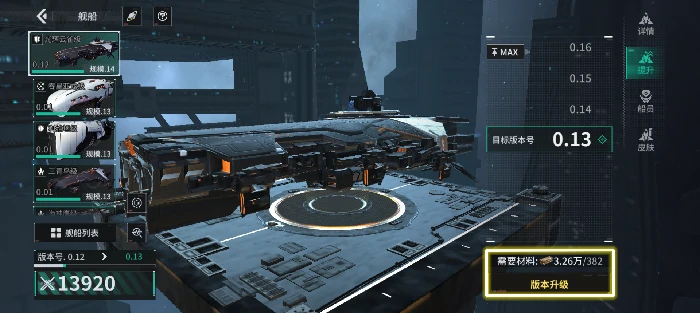 亿万光年舰船升级:选版本号快速升战舰,全面提性能。