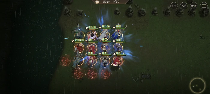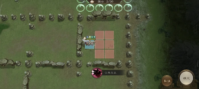 布阵阶段,按图示布置貂蝉、公孙瓒、曹洪、曹操站位,其余角色位置自由安排