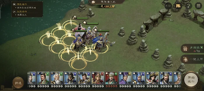 条件一:公孙瓒配0阶神兵,第二回合能用大招(属性随机,老玩家通常具备)