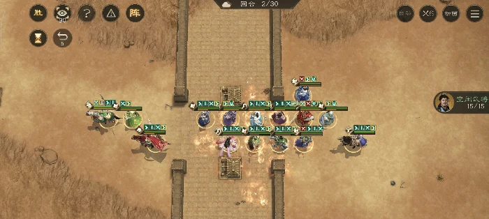 左路敌军排直线,庞统牵引到有利位置,打大量伤害。