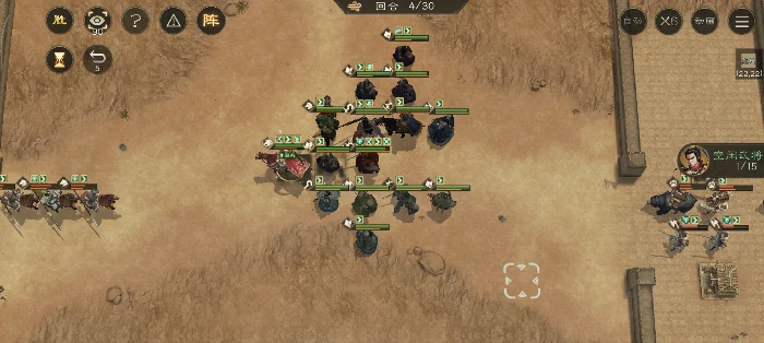 首回合集中清门口敌人,别早引伏兵,全军向左路移。