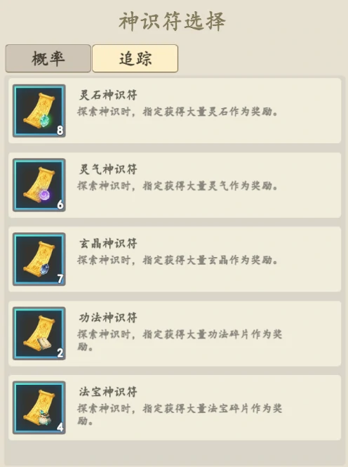 神识是完成事件、获取修行资源的关键。使用辅助神识功能,搭配神识符,获取稀有资源。