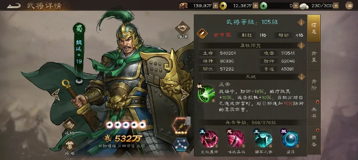核心配置:曹仁/魏延(替代许褚)装备拉满,星符选木土+木水组合,护卫技能升27阶兵书。堆防御、暴击抗性,利用伤害分担+受击回血扛暴击。