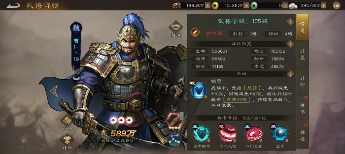 数据参考:曹仁基础防御79834,战场加成后达119051,缩小与敌军攻击差距。
