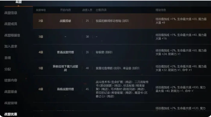 战盟等级提升,所有成员将获得额外属性加成。战盟等级越高,属性增益越显著。建议玩家尽早加入人数较多、发展较快的战盟,以享受更高加成。