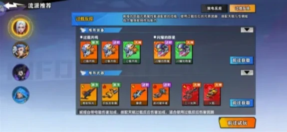 主要使用超载套装与辉星套装。不同场景推荐搭配: