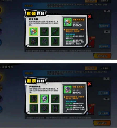 装备以2件+4件组合出套装效果,可选放电套装与辉星套装。理想搭配:放电头盔、放电背包、辉星上衣、辉星护手、辉星心核、辉星靴子。套装系统需角色60级开放,60级前选等级高、增伤明显的散件过渡。