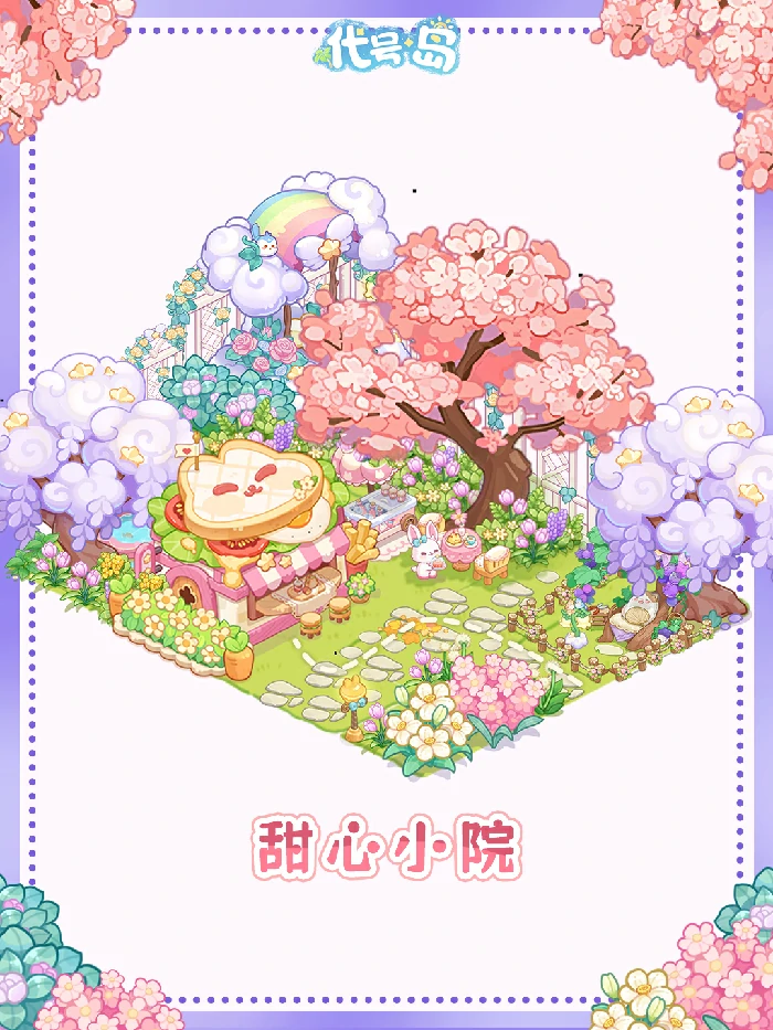 2甜心小院:选择樱花树位置,摆放小桌,设计午后茶点场景,方便好友互动。