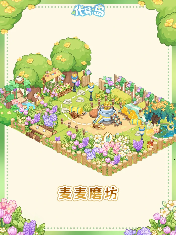 7麦麦磨坊:放置磨坊风车,搭配麦穗装饰,营造田园风格区域。