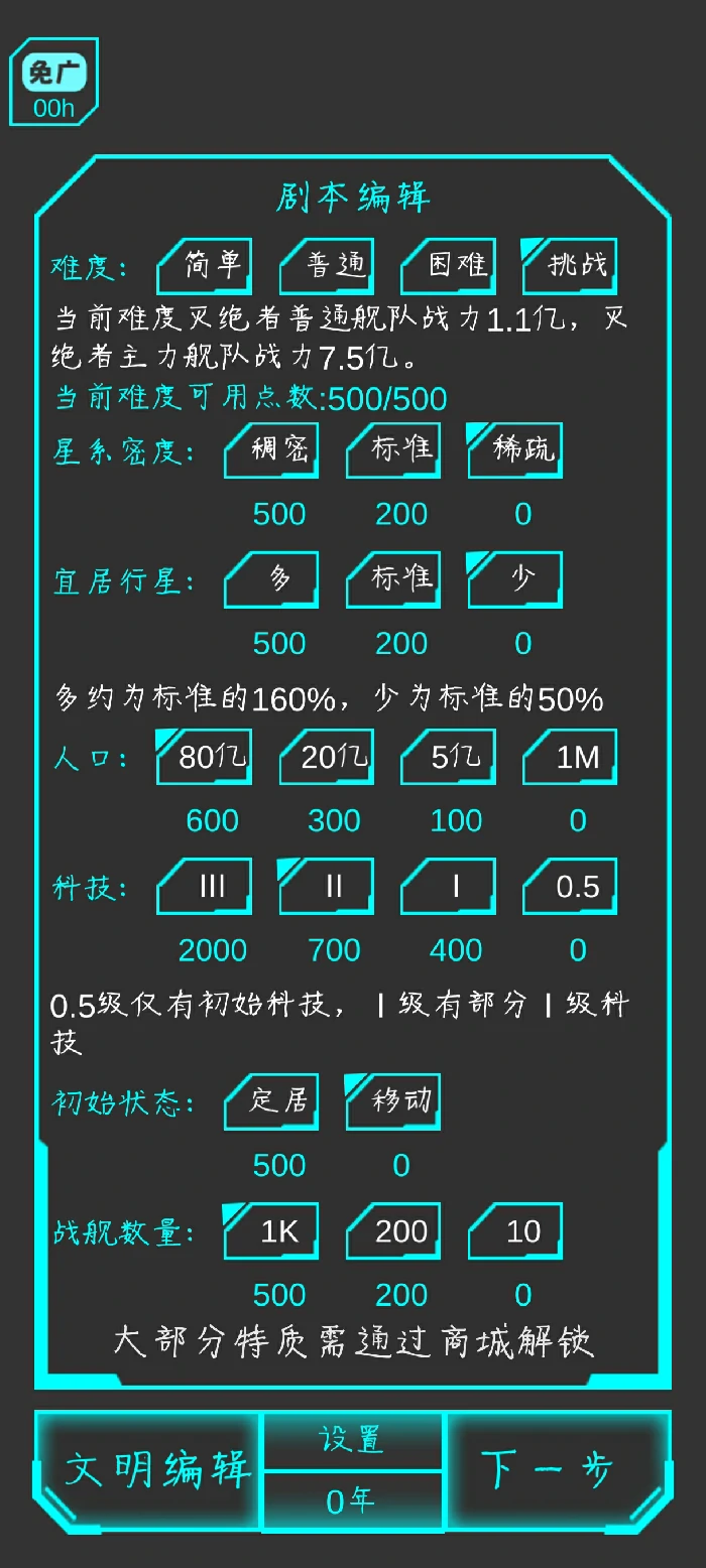 初始战舰数量:选1000艘,提供前期战斗保障。