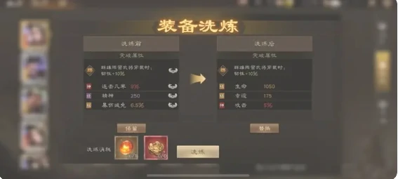 初期洗练不锁定词条,节省材料,易出1-2条实用属性;刷出攻击、兵刃、生命等核心词条,立即锁定继续洗练,追求第二条优质属性或阵营加成。