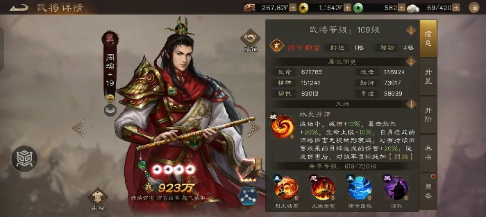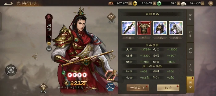 周瑜脱装备后防御过低,保留一件属性较差的装备。