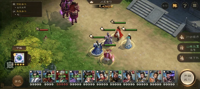 开局诸葛亮释放风系技能,小乔施加增益buff,郭嘉移动至指定位置施放技能,周瑜移动至目标区域布置火场,李儒移动至相应位置施毒。