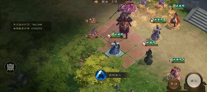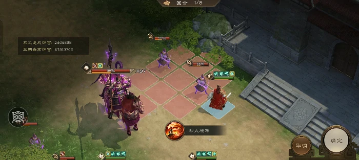 首回合结束后,敌方小兵后撤并分别攻击郭嘉与周瑜,第二回合完成阵型卡位。