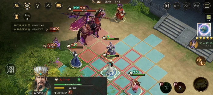 第四回合,诸葛亮先进行普通攻击,李儒下移普攻,郭嘉与周瑜均对吕布进行普通攻击,第四回合BOSS释放大招,第五回合诸葛亮继续普攻。