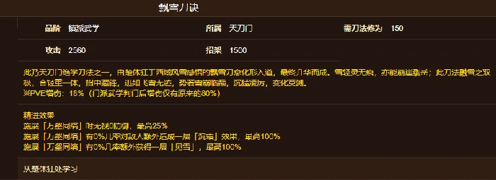 飘雪刀诀属天刀门镇派武学,获取前确认角色已加入天刀门,并满足门派身份要求。