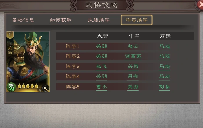 三国策略游戏关羽阵容搭配,以下为核心队伍配置,助你高效开荒与对战: