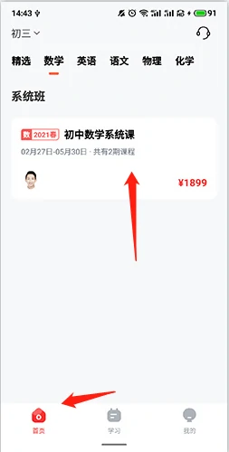 启动大米网校APP,底部导航栏点选首页,速览课程列表锁定目标。