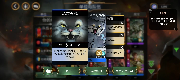 哥布林与猫咪技能都能增加火宝石数量。再看火斧技能: