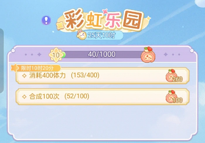 5. 彩虹乐园活动秘籍:合成界面左侧进入,消耗体力/做合成/接单得蛋糕卷,升级领奖励。每日限时体力任务要注意:完成任务立刻进活动界面领奖励!领完才刷新下一个,进度会重置!体力快到任务要求时,先去活动界面确认领取,再继续消耗,千万别浪费进度!