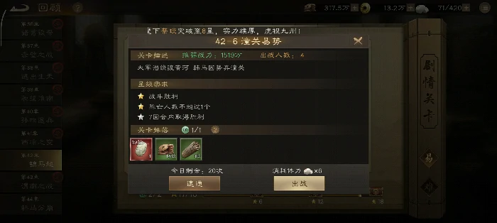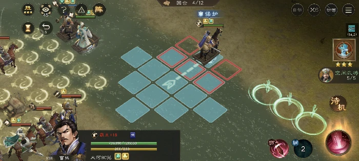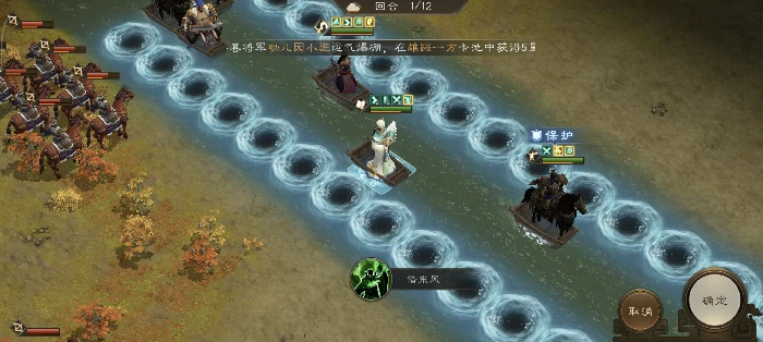 主线42-6通关:7回合内护送带保护标记的曹操抵达右侧高亮区。