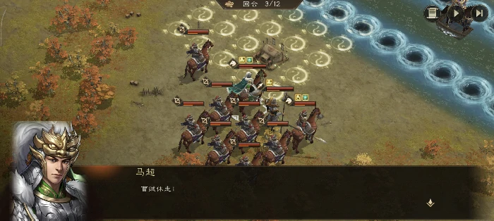 遇马超等增援别纠缠,保护曹操保持移动。