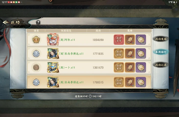 每周战功排行榜发放特殊称号和召唤令,如图3所示。