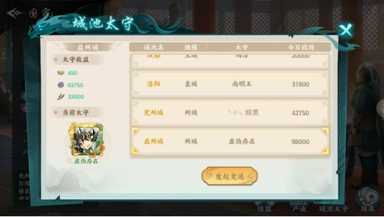 4.争取担任太守。成为太守后每日领取固定收益,包含元宝。