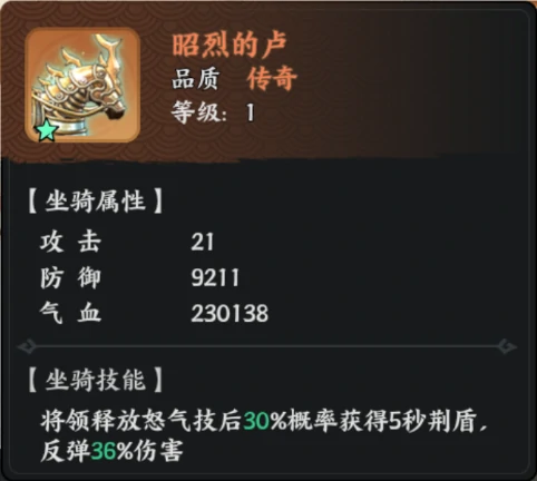 昭烈的卢适配,加防御生命增坦度,荆盾效果再提反弹伤害。
