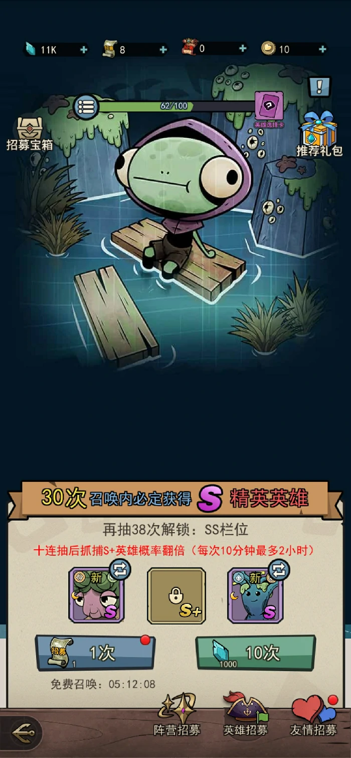 所有英雄均可抓捕获取。通过航海玩法积累主动抓捕次数(可叠加存储),搭配十连抽后S+英雄抓捕概率翻倍机制,提升高品质英雄获取率。若抓捕失败,使用钻石继续捕捉。