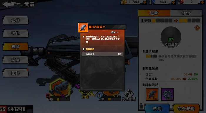 进阶,消耗对应武器碎片,碎片靠武器订购、竞技商店兑换,每次进阶猛提基础属性。