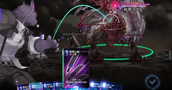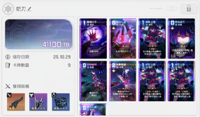 1费生成2张匕首版本伤害更高,通常选0费,无则1费备选。附加诅咒效果,对单目标第一个选项上限高,第二个综合稳定性好,第四个效果最强但可能延迟一回合爆发。奶刀核心技能暗影上膛必须选第四个效果,即使用技能卡牌治疗时生成一张暗影匕首,建议至少复制3张,首回合打出越多越好,凑齐大量复制难,一般以3张为目标。肉鸽模式三选一事件,选项为获得神卡、分解三张卡、复制一张卡时,务必选复制,能显著降低达成三张暗影上膛难度。攻击要害可带可不带,强化选项再次发动效果下限稳,增加伤害量效果上限高。