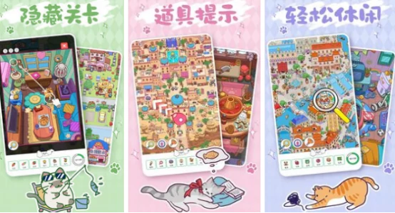 进入猫咪世界,按关卡提示搜寻隐藏物件。检查场景角落,锻炼观察力与搜寻技巧。随关卡推进提升难度,保持探索动力。解锁猫咪伙伴,收集多样猫朋友。