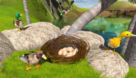 飞行鸭子模拟器中,化身鸭子,自由探索广阔自然世界。途中遇同伴,发现蝎子等昆虫,捕捉作食物。警惕天敌,及时躲避保生存。在森林环境不断探索,寻找伙伴,壮大鸭子家族。
