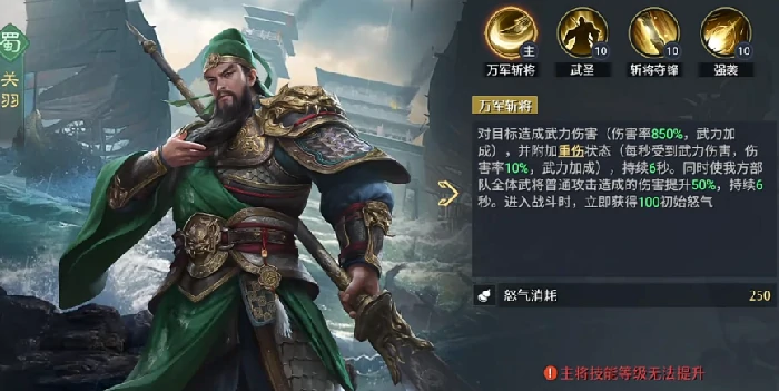 关羽武力突出,擅单体输出,开荒主将稳推进;张飞有被动,交战概率无视对手部分防御,对高防敌人效果显著;马超技能侧重范围攻击,关卡多目标时清场能力强。