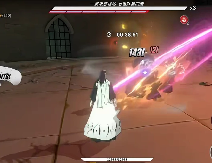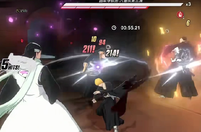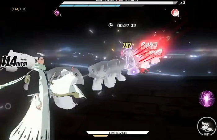 操作流程:战斗开始,朽木白哉先开领域大招,立即切黑崎一护持续输出。一护技能冷却或连击节奏放缓,切东仙要入场,用聚怪技能集中敌人继续攻击。一护灵力耗尽,东仙要短暂输出,其大招强力冲击波命中刷新连击计数,维持连击续航。注重流畅角色切换,确保连击数平稳增长。