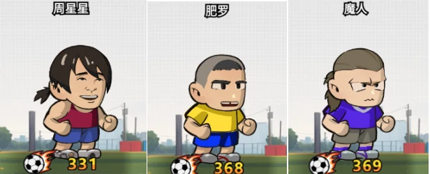 训练赛核心目标是进球,系统送三位前锋:肥罗(巨星)、魔人(巨星)、周星星(明星),选这三位,集中资源提升他们进攻属性,冲刺满星评价。