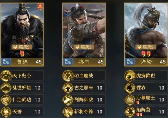 阵容成型后,确保操作顺畅。为许褚配备虎啸龙吟技能,增强反击次数与伤害;让曹操携带坚阵合一,提升全队防御稳定性和持续作战能力,保障反击机制长久运转。