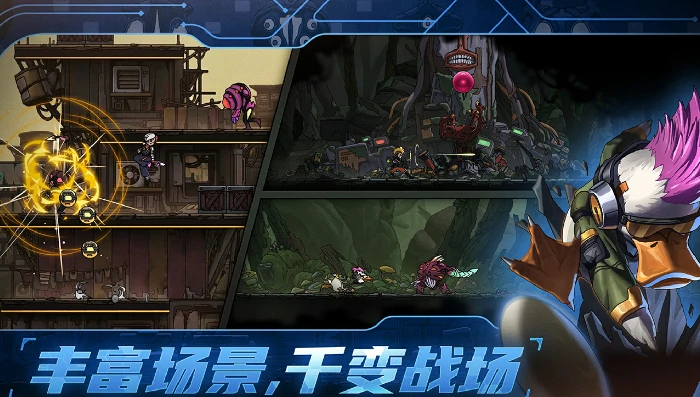 角色选择上,蛋壳鸭卫有格挡与位移技能,可在前排承伤保护召唤单位;迅影鸭卫擅长远程输出,能为召唤物提供火力掩护,适合追求攻守平衡的玩家。玩家按打法偏好搭配角色,构建适合个人风格的战术体系。