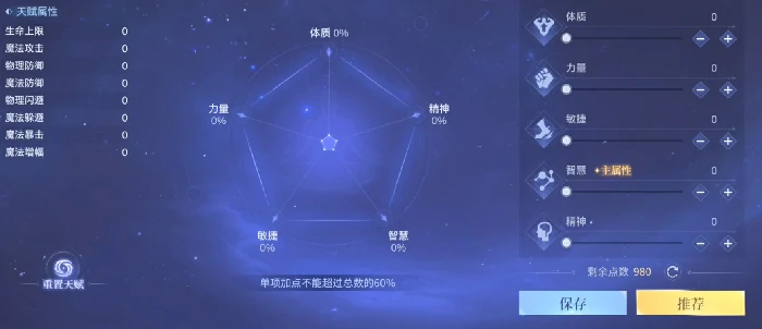 天赋加点核心思路围绕武魂类型,武魂偏魔法输出主加智慧属性,强化魔法攻击、魔法防御及法术增幅,余点分配精神或体质增生存;武魂力量型优先投力量属性。不确定武魂定位,用游戏推荐加点功能,自动匹配最适属性分配方案,快速完成配置。