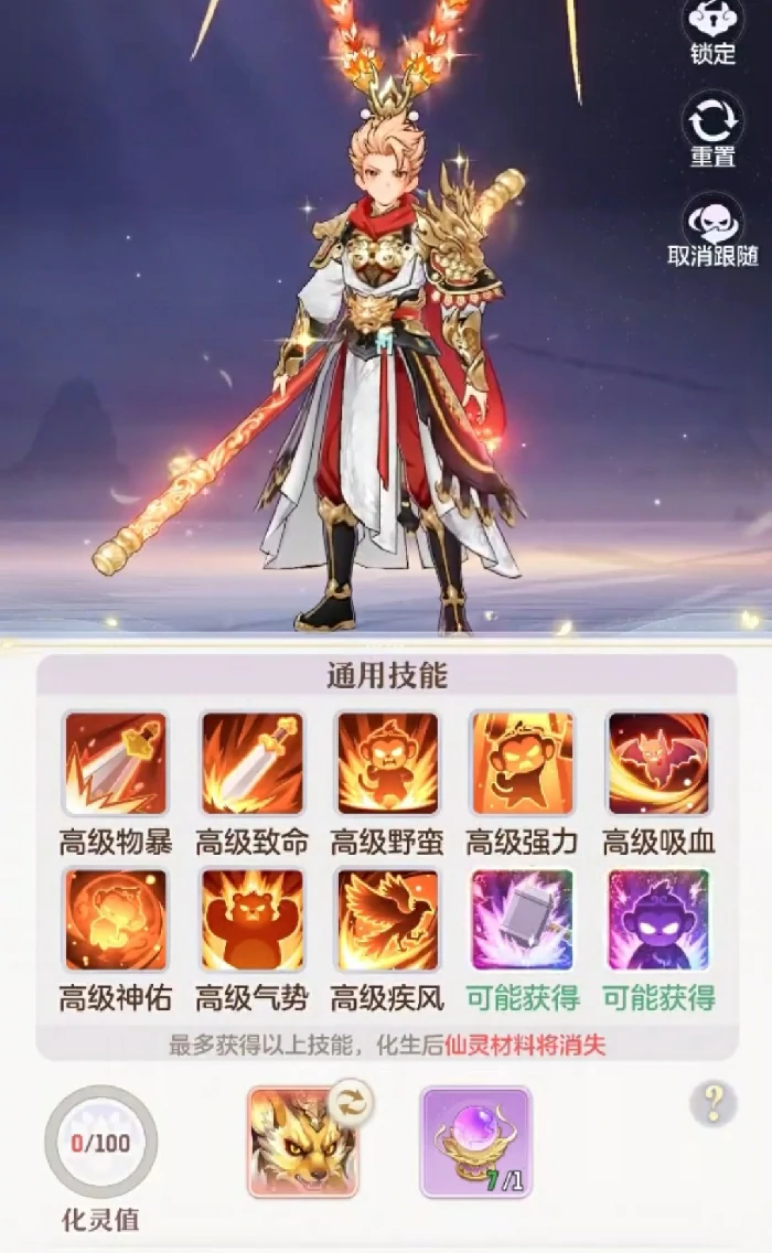 基础资质超越小太白,进阶后属性成长飙升!专属天赋三头六臂触发赤焰穿心,每20怒气追加攻击