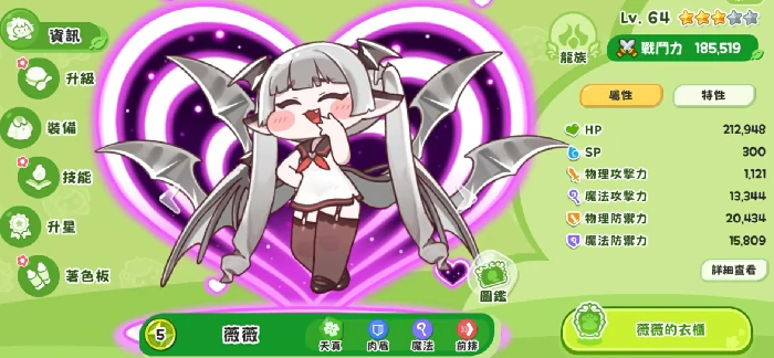 薇薇(前排均衡战士):基础属性扎实防御突出,长期承担前排伤害。普攻命中回复生命,高阶护盾破裂时对全体敌人造成魔法伤害,叠加破甲效果持续削弱敌方防御。