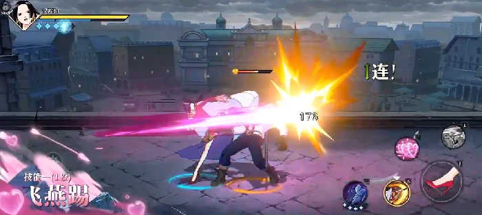 一技能飞燕踢:点按分三段——直线突进踢、斜旋上踢、空中下劈抓取;长按消耗精力强化攻击,提升距离规避飞行道具,特定形态可调Y轴,技能中按普攻可中断接普攻终结段。三级强化命中附加短石化。