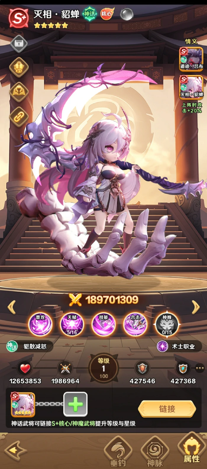 出战默认五人,助战再添俩!不占主战位,不打常规回合。战斗开场,按顺序秒入场,立马甩终极技能!比如貂蝉,先控敌人,放最左侧!