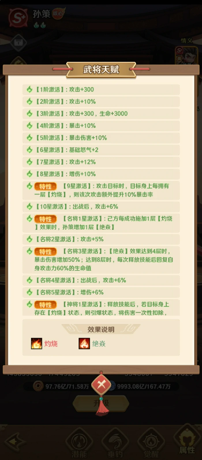 总结:孙策为输出核心,依托技能-灼烧联动机制主宰战场。合理配队、强化生存,即可激活其全部战力。