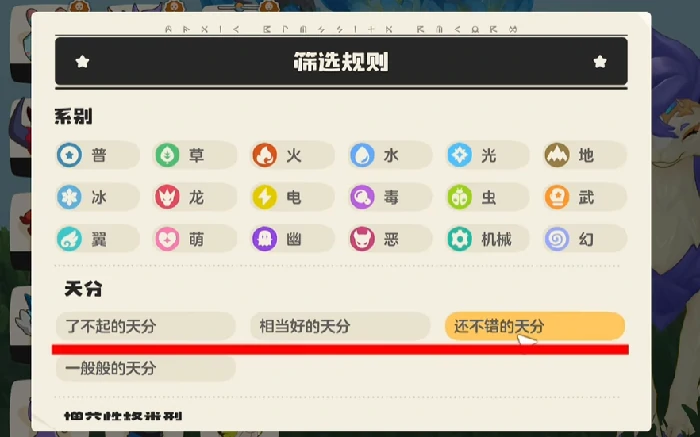 精灵天分决定成长上限,了不起天分稀有但获后值得重点培养,日常游玩相当好天分具备强实战能力。