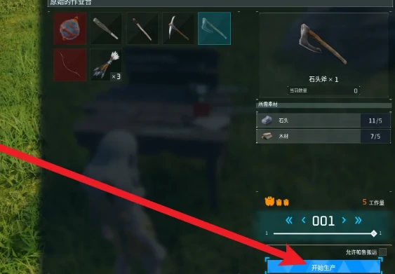 制作步骤:1. 靠近原始作业台,点击交互打开制作界面。